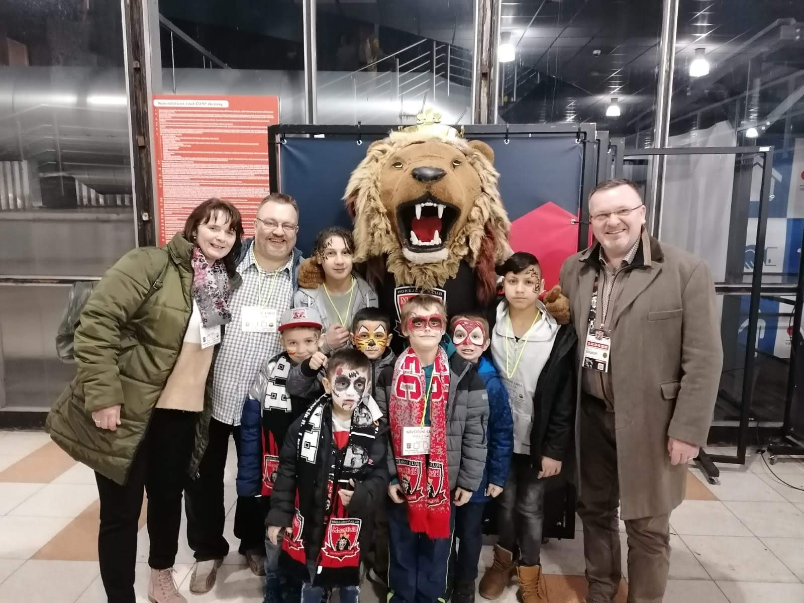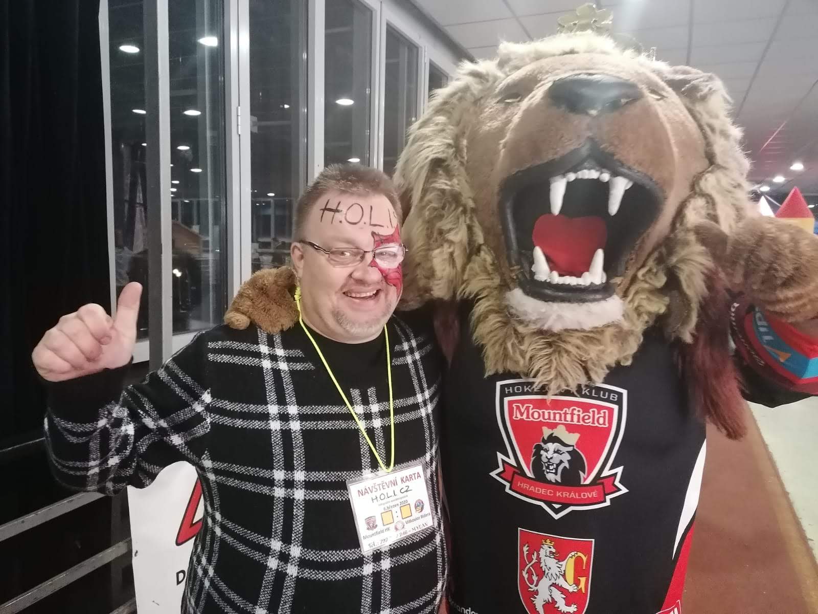 V průběhu večera se našim dětem věnoval místopředseda představenstva místního hokejového klubu Mountfield HK, p. Ing. Martin Soukup, který pro všechny o přestávce zajistil občerstvení na přání každého. Nakonec se všichni aktéři a pomocníci vyfotili s maskotem místního klubu - lvíčkem Mountym.
